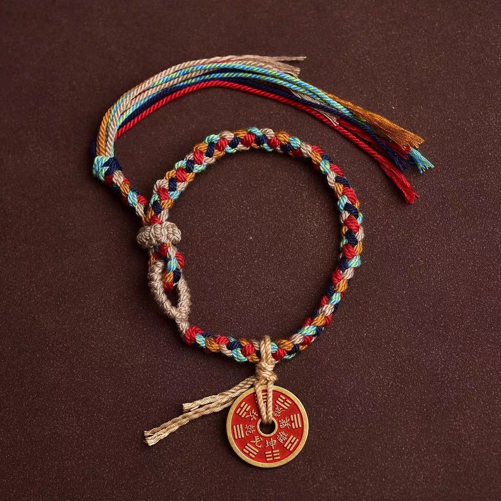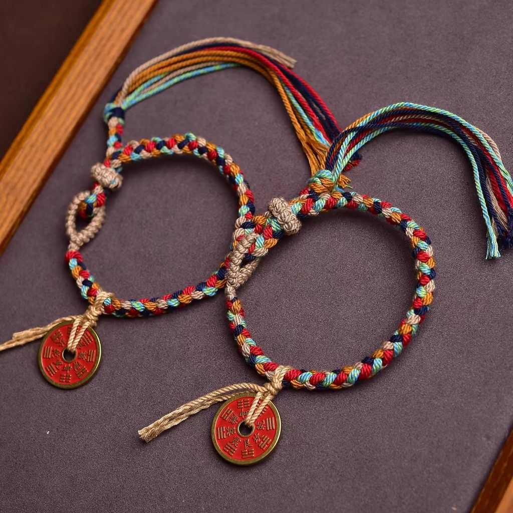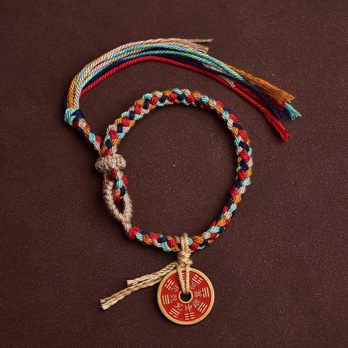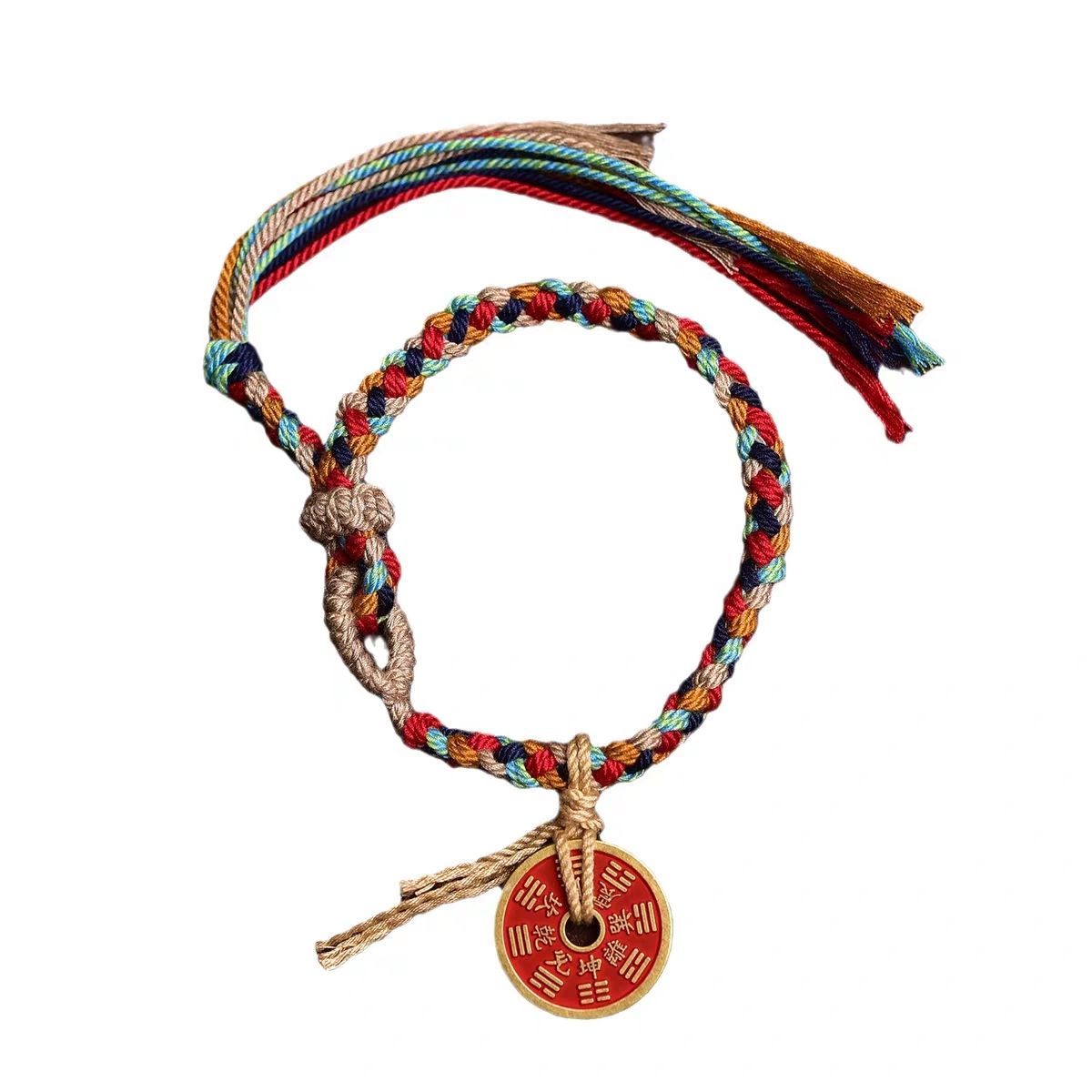 Traditional Tibetan - Style Hand - woven Amulet Bracelets for Couples: Incorporating Mountain Ghost Coins - Symbol of Protection and Love